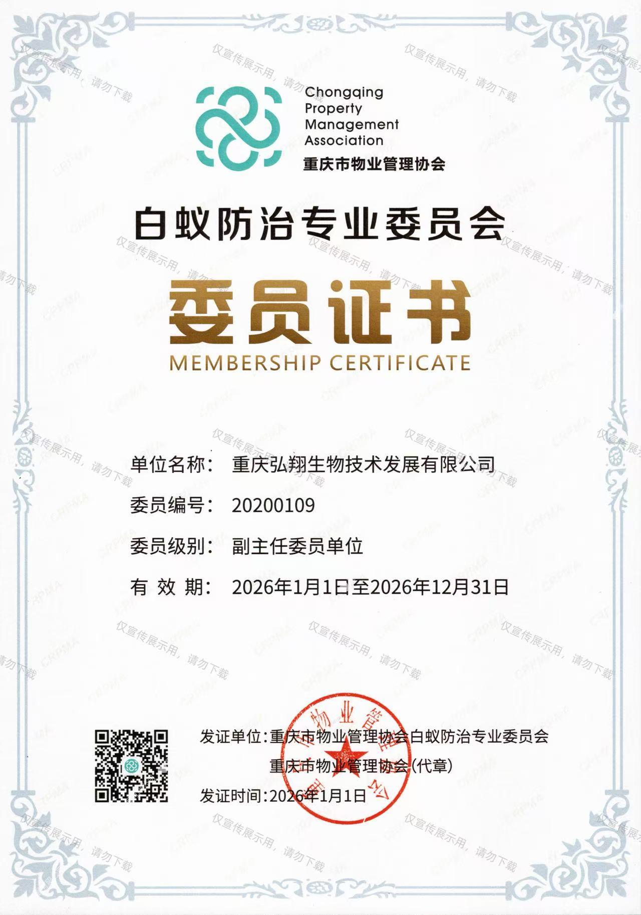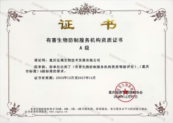 重庆弘翔生物技术发展有限公司成立于2001年,主营白蚁防治、四害消杀、杀虫灭鼠等虫控技术服务,是《中国物业协会白蚁防治专业委员》、《重庆市物业协会白蚁防治专业委员》、《重庆市科技型企业》、《重庆市创新型中小企业》,持有《重庆市有害生物防制服务机构服务能力认定证》、《有害生物防制服务机构资质证书A级》,获得两项国家专利证书《白蚁诱杀监测装置》、《老鼠毒饵站模具》。曾多次参与应急防疫消毒工作,是《重庆市住建委物业行业应急服务队》。